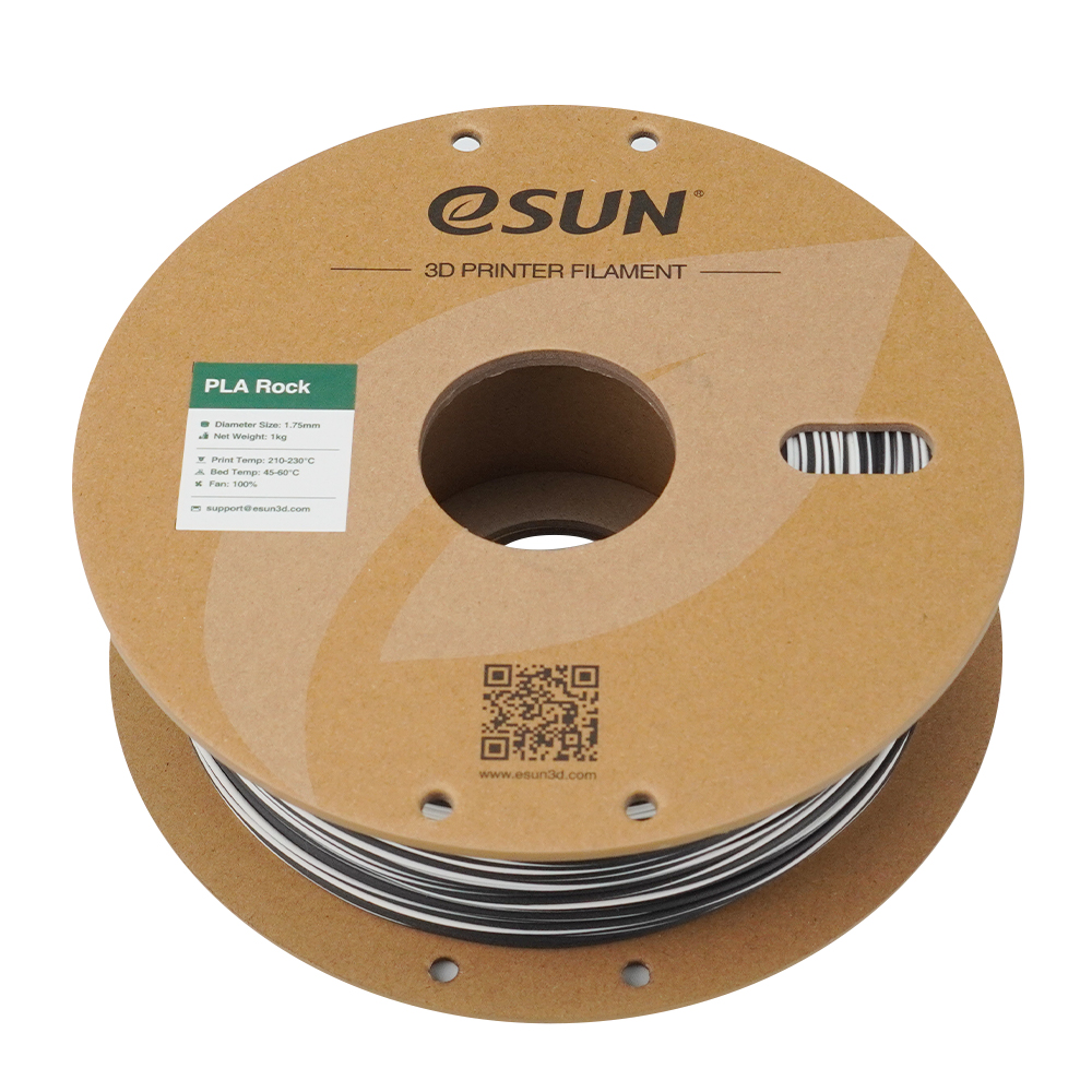 eSUN PLA Rock este un filament special conceput pentru a oferi printurilor 3D un aspect natural si textura unica de piatra. Formula sa mata si gradientul subtil de doua culori creeaza o iluzie de profunzime si dimensiune, transformand obiectele obisnuite in replici realiste cu o estetica terestra. Acest filament PLA este un material ecologic, derivat din resurse regenerabile, si ofera o printabilitate excelenta, reducand riscul de infundare a extruderului si asigurand procese de printare fiabile si fara probleme.