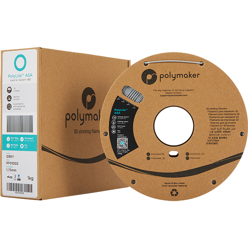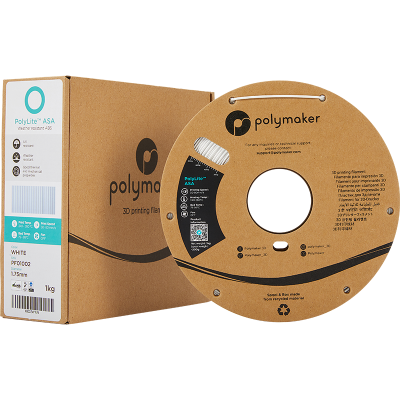 Filament ASA Polymaker™ este soluția profesională pentru printarea 3D a pieselor destinate utilizării în exterior. Conceput ca o alternativă superioară la ABS, acest filament ASA oferă rezistență excepțională la razele UV, umiditate și stres termic – menținându-și integritatea structurală și culoarea pentru minimum doi ani în condiții de exterior.