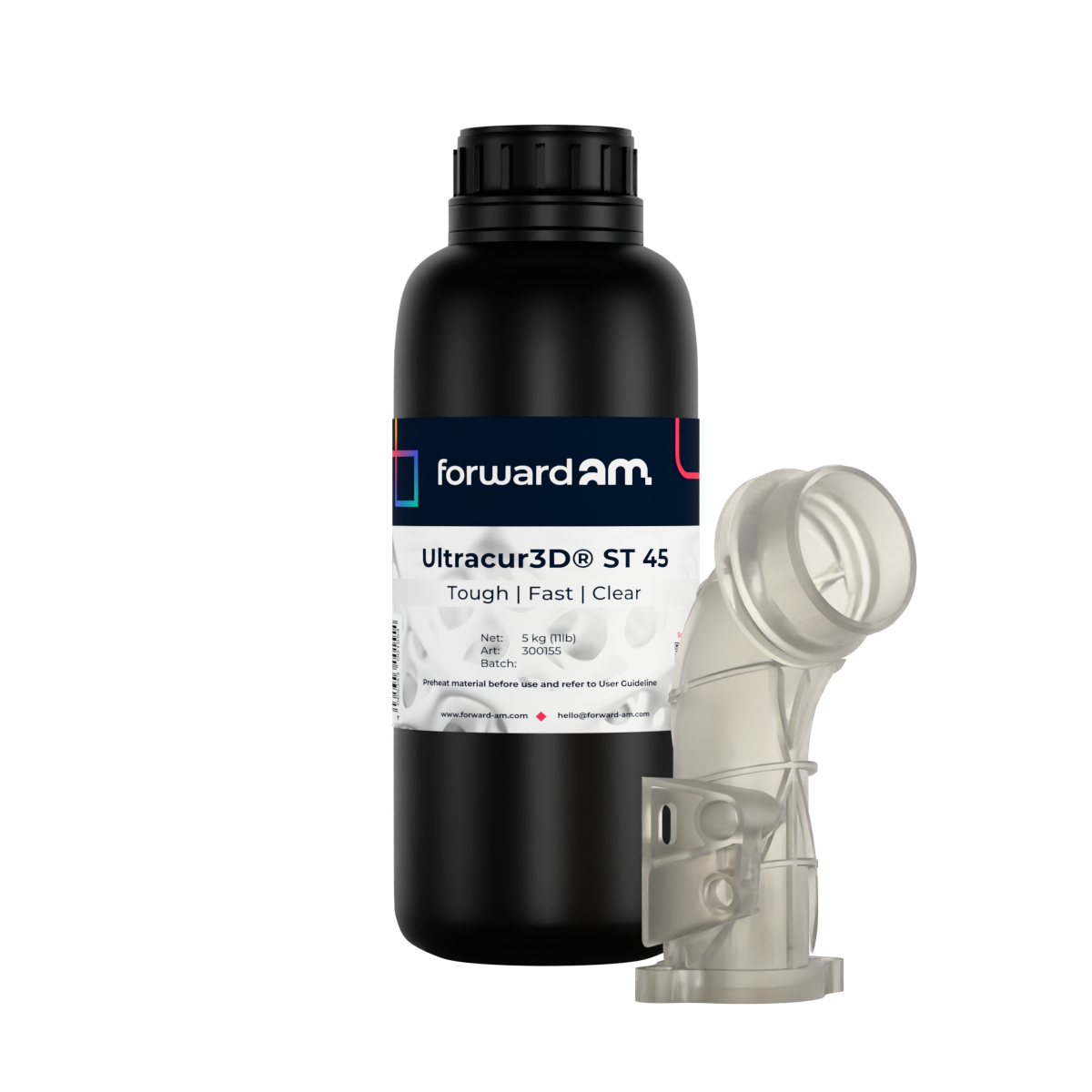 Forward AM, divizia de fabricatie aditiva a BASF, a dezvoltat si produce aceasta rasina pentru a satisface cerintele industriale moderne. Piesele obtinute din Ultracur3D ST 4500 se caracterizeaza prin remarcabila rezistenta la uzura si solicitari mecanice, oferind longevitate in conditii de functionare exigente. Ambalarea in galeata de 5 kg in varianta clar este ideala pentru productia de volum mediu, asigurand o manipulare convenabila si o buna gestionare a stocului.
