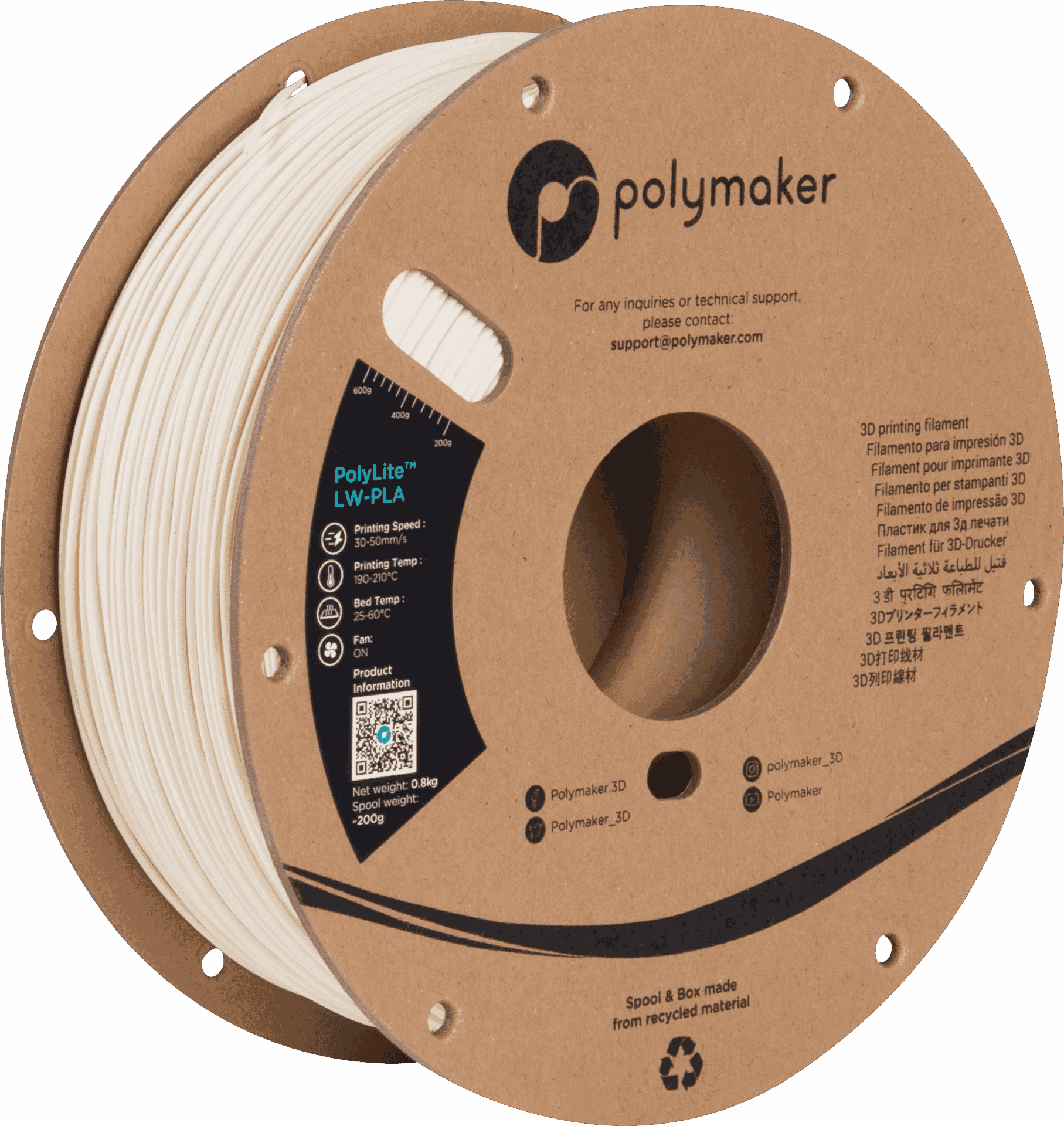 Polymaker este recunoscut pentru standarde ridicate de control al calitatii, iar acest filament nu face exceptie. Este ambalat intr-o cutie rezistenta cu deschidere usoara si este protejat impotriva umiditatii printr-o folie sigilata si un sac cu gel silicat. Compatibil cu majoritatea imprimantelor 3D FDM desktop, PolyLite LW PLA deschide noi posibilitati creative si practice pentru hobby sti si profesionisti, transformand abordarea proiectelor usoare si de mare volum.